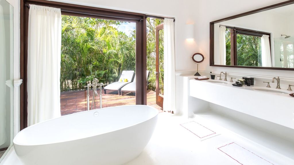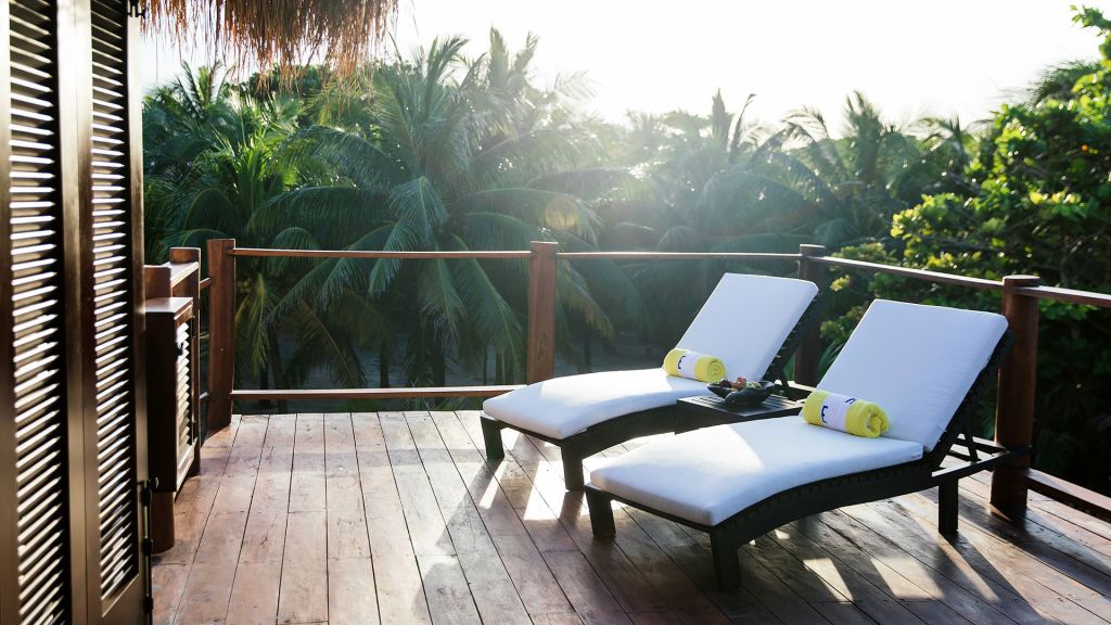 Many of the balms and scrubs begin in the spa’s organic kitchen, where local herbs and plants are prepared fresh to order. For those who like to stay active, the Technogym‑equipped fitness room sits under a lofty palm‑thatched ceiling, and there are tennis and pickleball courts as well as complimentary sunrise yoga sessions daily.