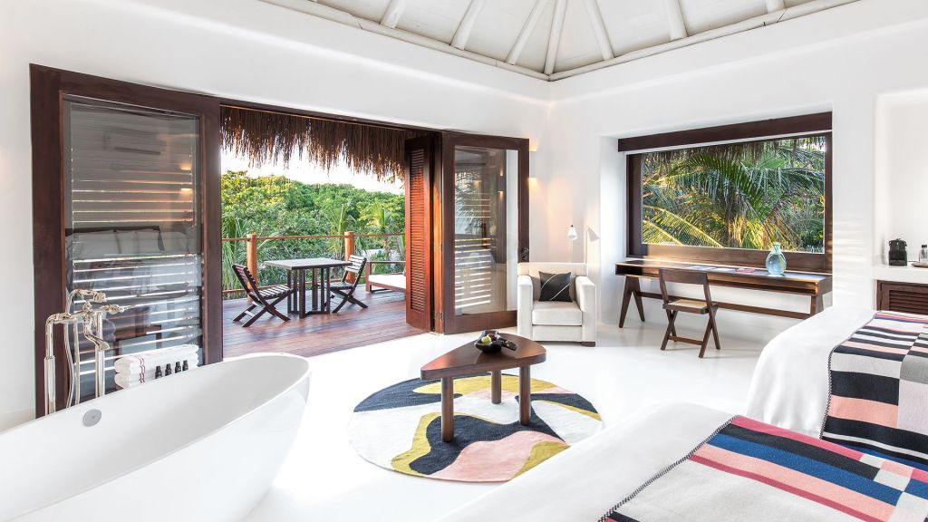 With 47 suites and four villas sited with breezes and shade in mind, each is a study in proportion and comfort. All have generous terraces that look out onto either leafy gardens or the sea, and many offer private plunge pools or rooftop spaces for morning coffee or late‑night stargazing. Thoughtful details like ample natural light, seamless indoor‑outdoor transitions, and locally inspired materials give each space a personality of its own.
