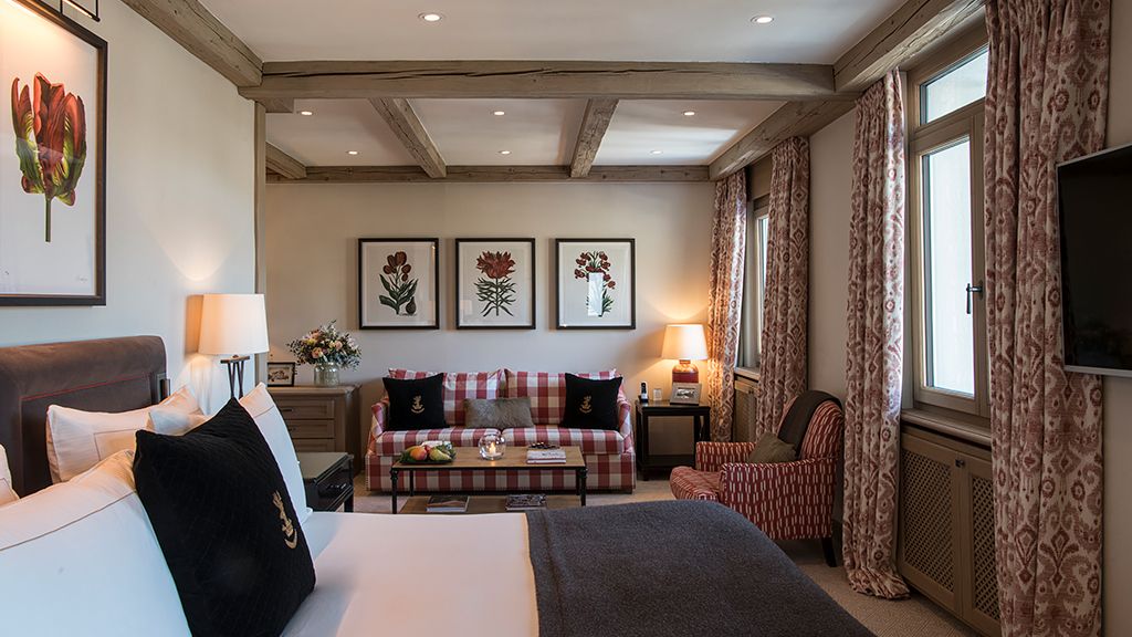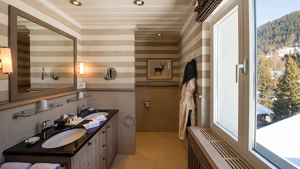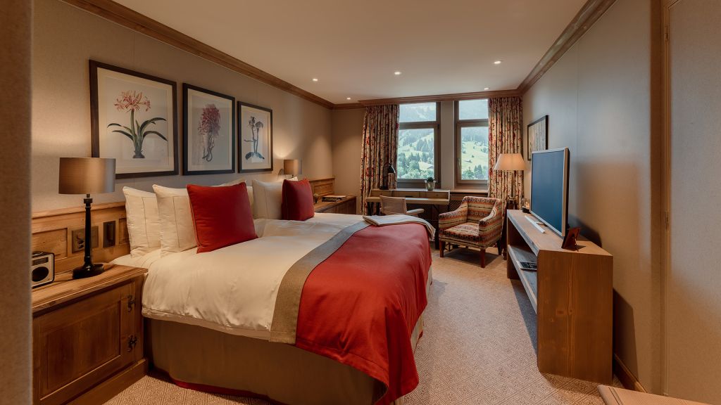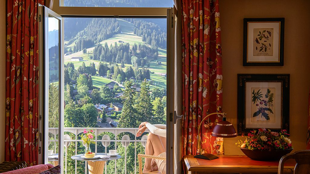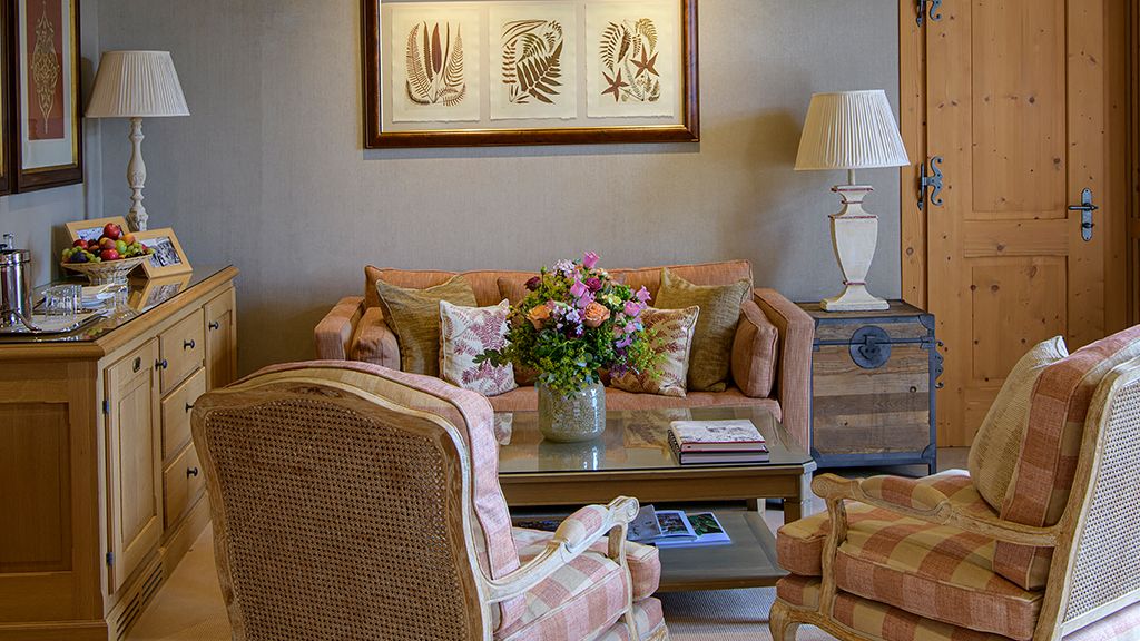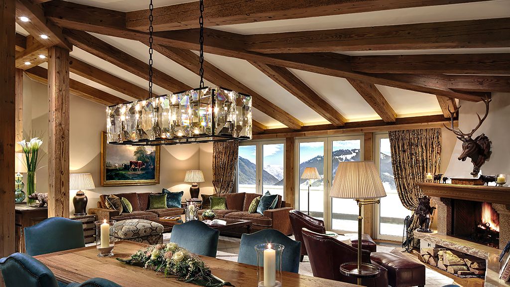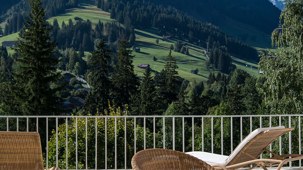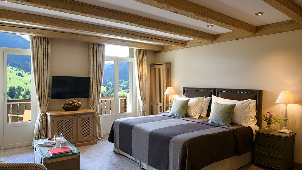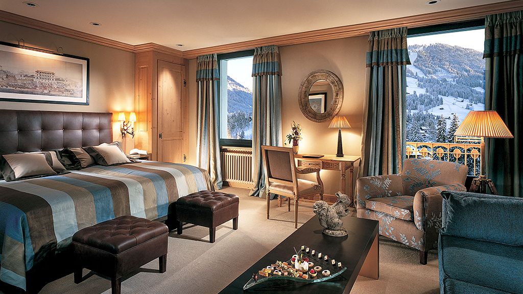 Corner suite mountain view 92 sqm. Of living space, one bedroom with bathroom and steam bath walk-in wardrobe large living room with a separate lounge and dining area balconies with breathtaking views over gstaad and the mountains the suite can be combined with a deluxe junior suite, which can again be enlarged with a classic room