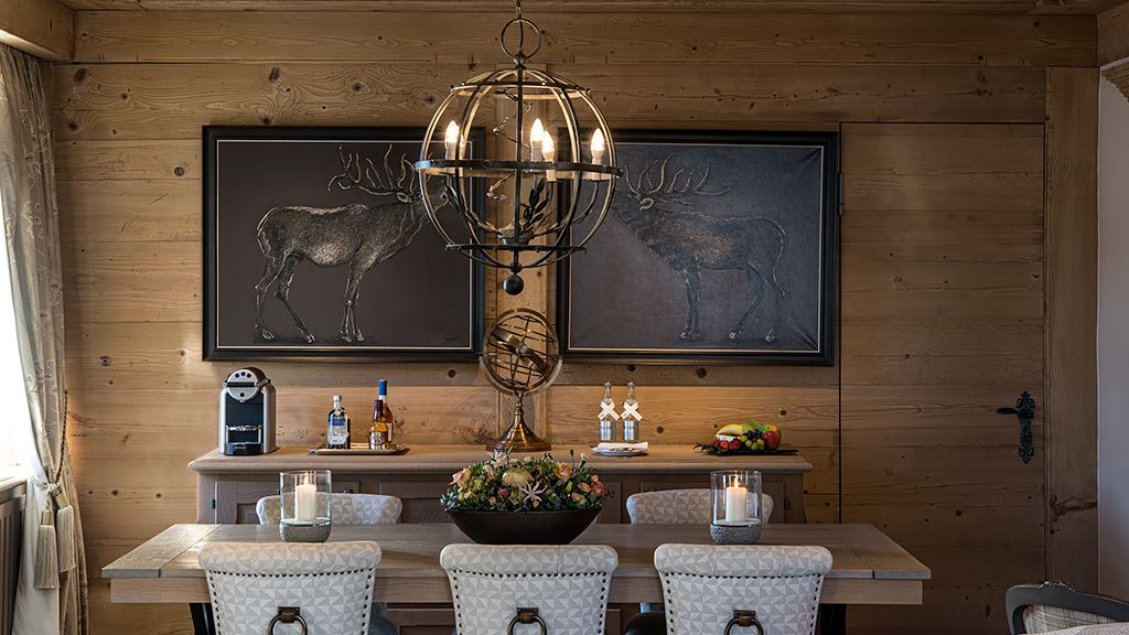 Deluxe suite mountain view 90 sqm. Of living space, one bedroom with bathroom and steam bath large walk-in wardrobe large living room with a lounge and dining area and wet bar with an exclusive wine cabinet separate guest bathroom with a shower balcony with breathtaking mountain views