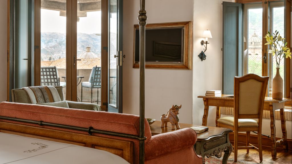 This all-suite hotel is home to 16 chica suites, 29 suites, nine grand suites, and one Nazarenas suite. Fireplaces, views of the hillside Inca site of Sacsayhuamán or Cuzco’s cathedral in the Plaza del Armas are on offer in many of the suites, where each bathroom features under-floor heating and Peruvian travertine marble.