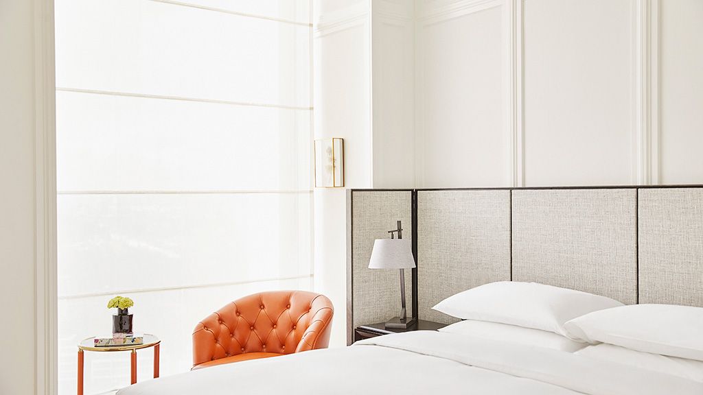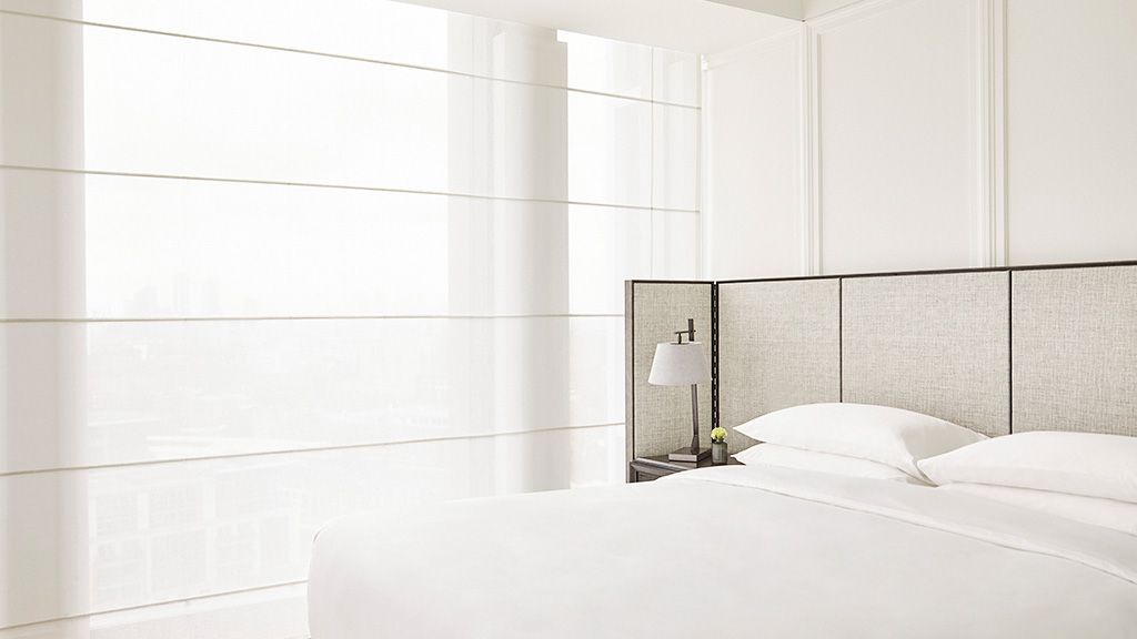 Enjoy our sophisticated 35sqm (376 sq ft) room with a plush king size bed, featuring floor to ceiling windows, a marble bathroom and luxurious amenities.