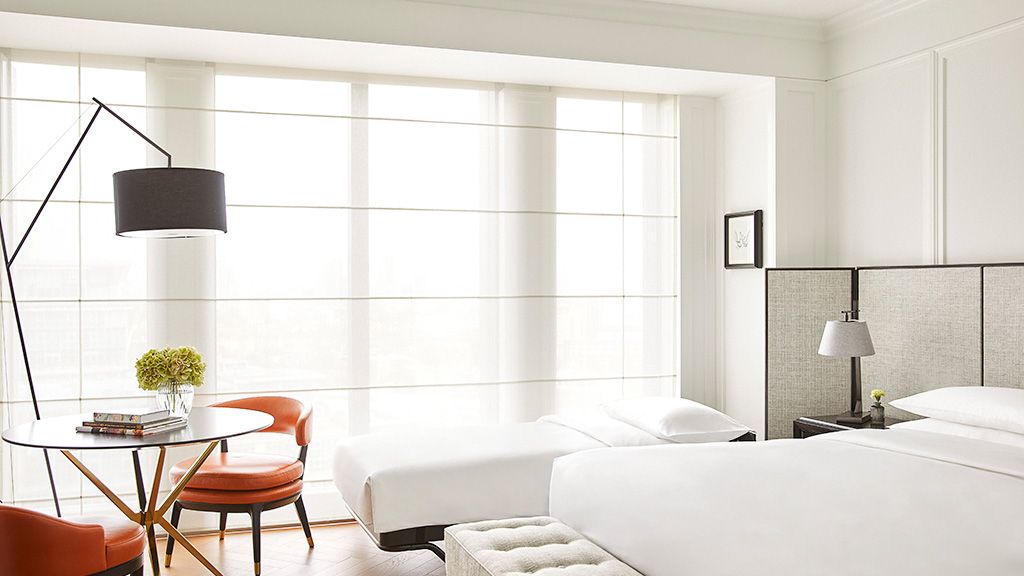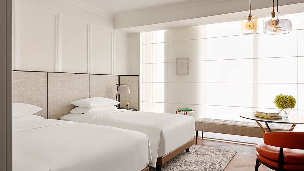 Elegantly decorated 35 sq m (376 sq ft) twin room offers two single beds, double vanity counters, marble bathroom and floor-to-ceiling windows. Ideal for travel companions on business or leisure.