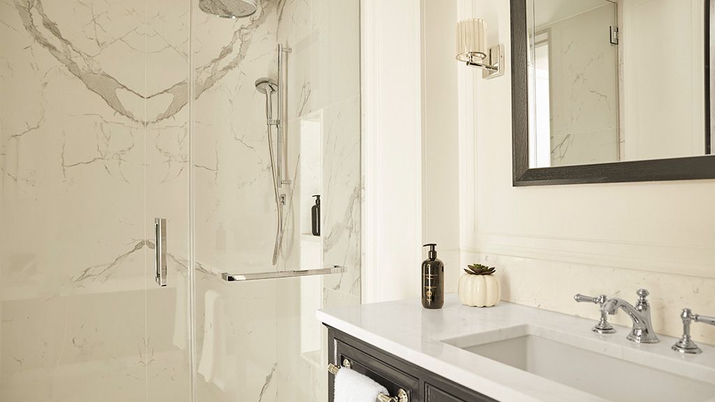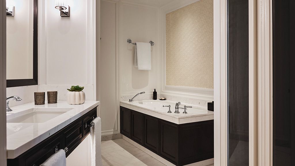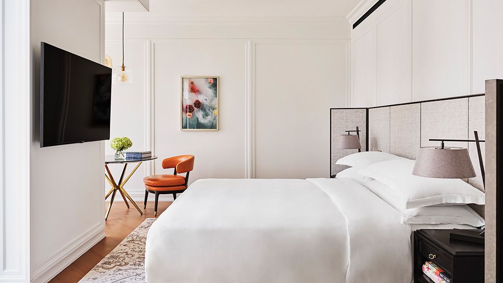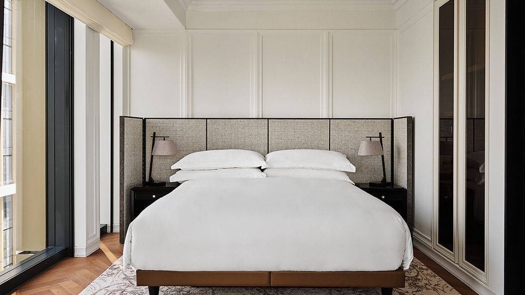 This spacious corner room is a 37 sq m ( 398 sq ft) haven, furnished with one king bed cascaded in natural light, a wardrobe accessible from both bedroom and bathroom and luxurious amenities.