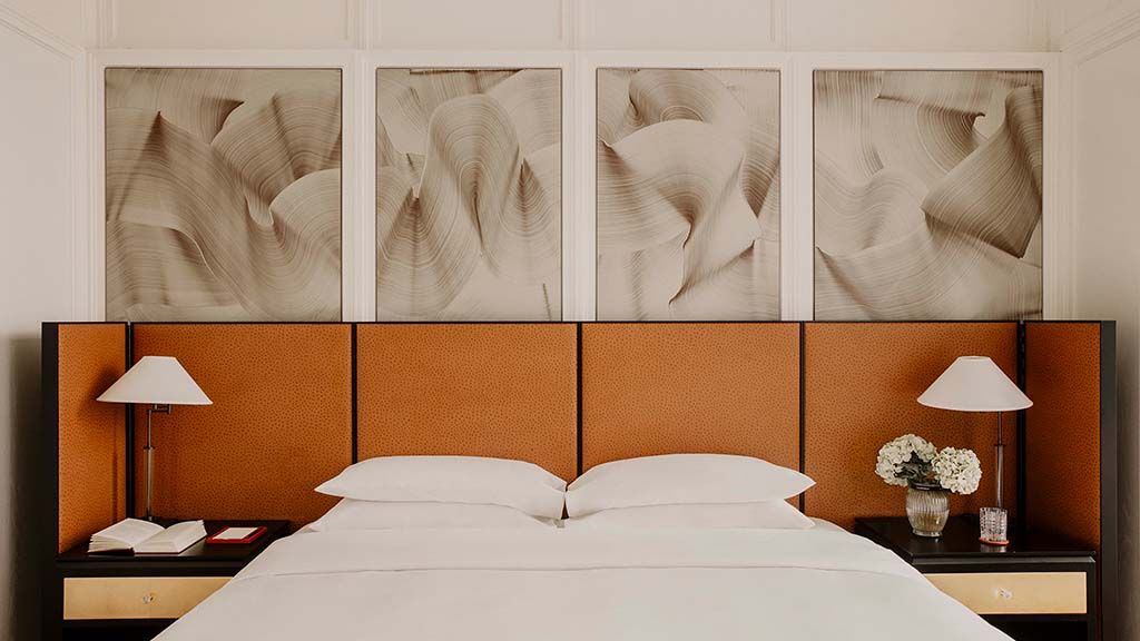 Immerse yourself in unparalleled luxury within our 172 sq m (1,851 sq ft) Presidential Suite. Boasting breathtaking panoramic views of London, this exquisite suite offers an unforgettable experience with distinct decor, including two Charlie Whinney pieces, paying homage to our Ebb and Flow statement piece in the hotel lobby. This space is ideal for both work and relaxation, offering a spacious dining table for eight and a comfortable half-moon sofa for socialising with family and friends. The bedroom leads effortlessly to a stunning walk-in wardrobe.