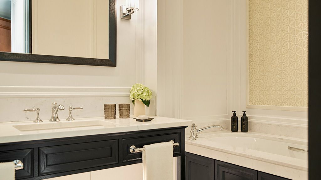 This luxurious River Suite boasts incredible views of the River Thames and London city in our 54 sq m (581 sq ft) space that features a separate living room, a bedroom with a king bed, a stunning marble bathroom with double vanity counter, separate tub and shower.
