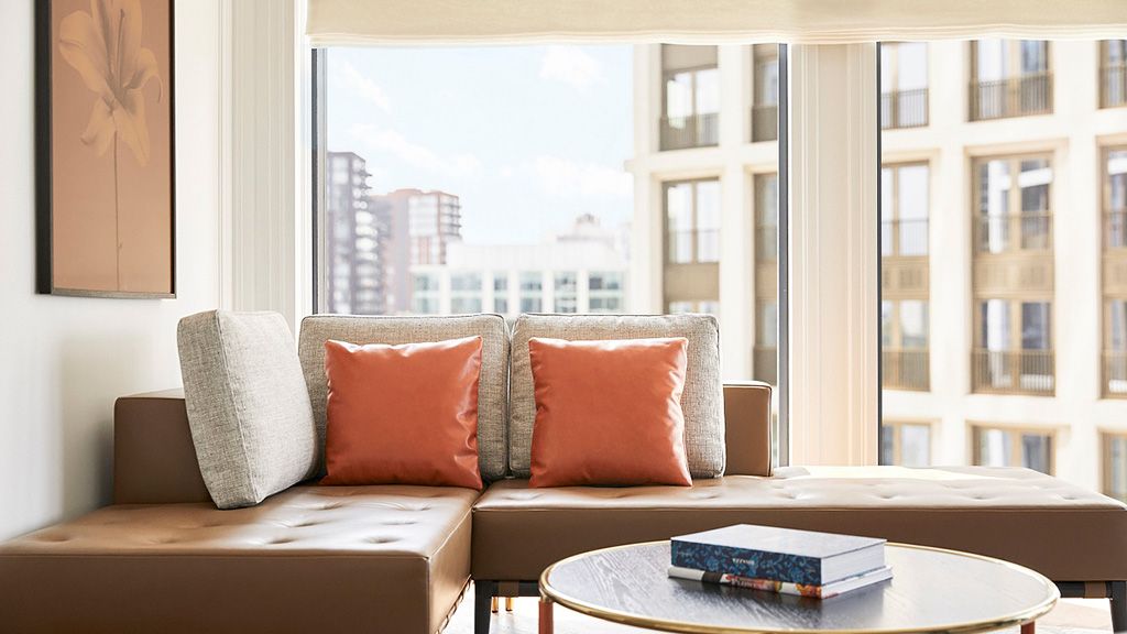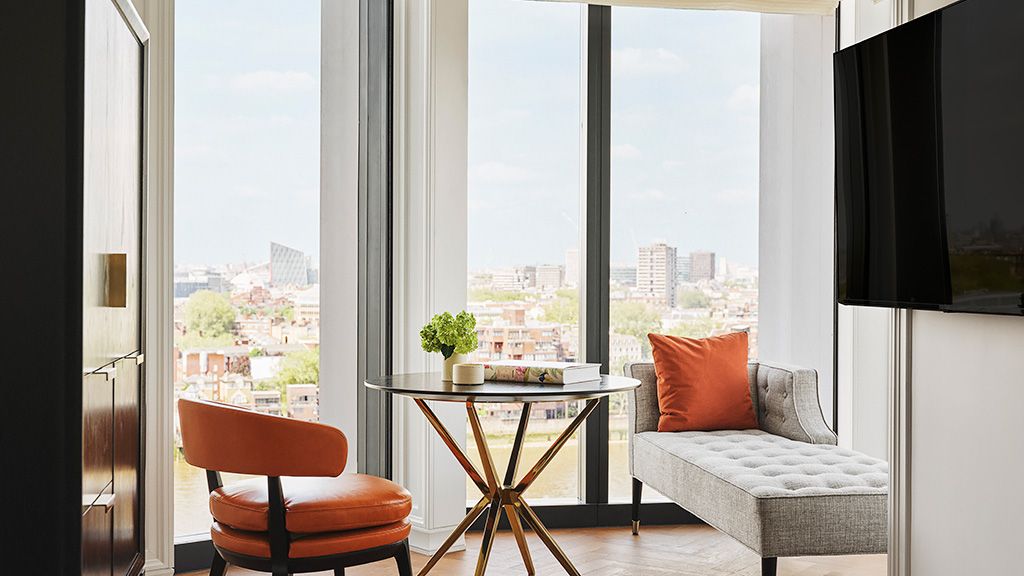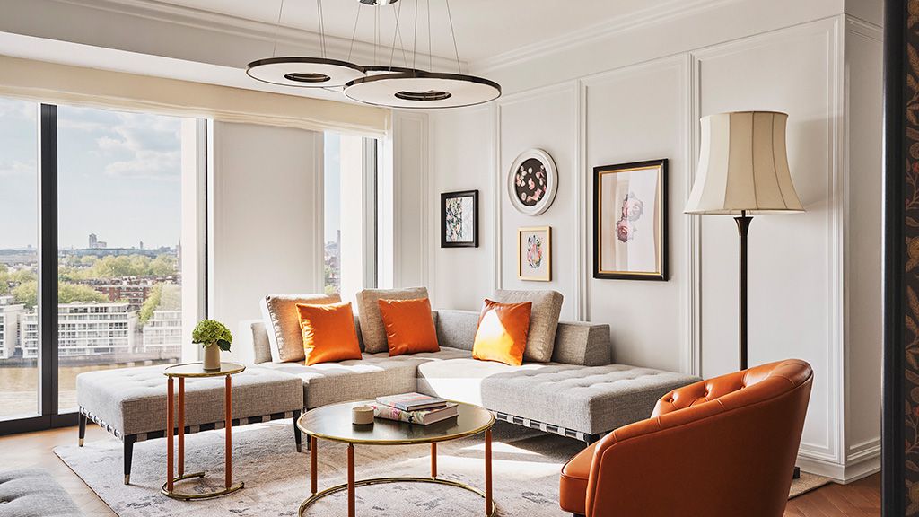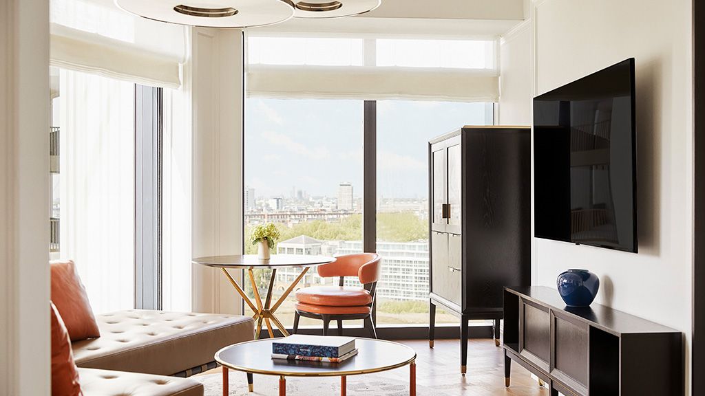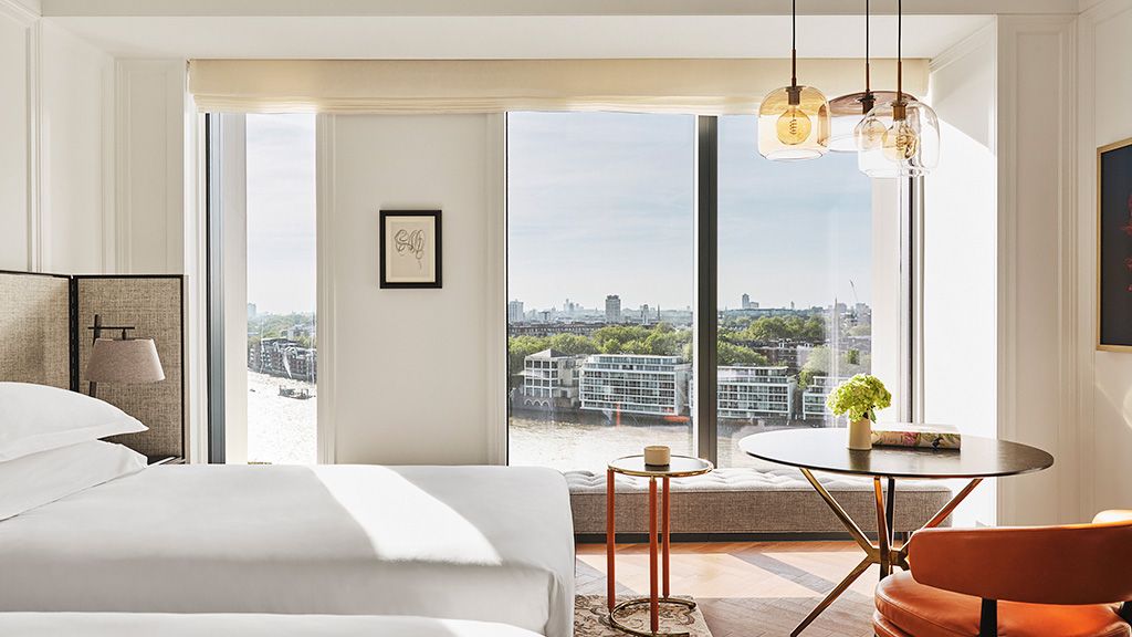 Revel in stunning London skyline views from this spacious 74 sq m (796 sq ft) suite encompassing a luxurious bedroom and spacious living room, both with floor to ceiling windows overlooking the city and the River Thames, tastefully decorated with contemporary art.