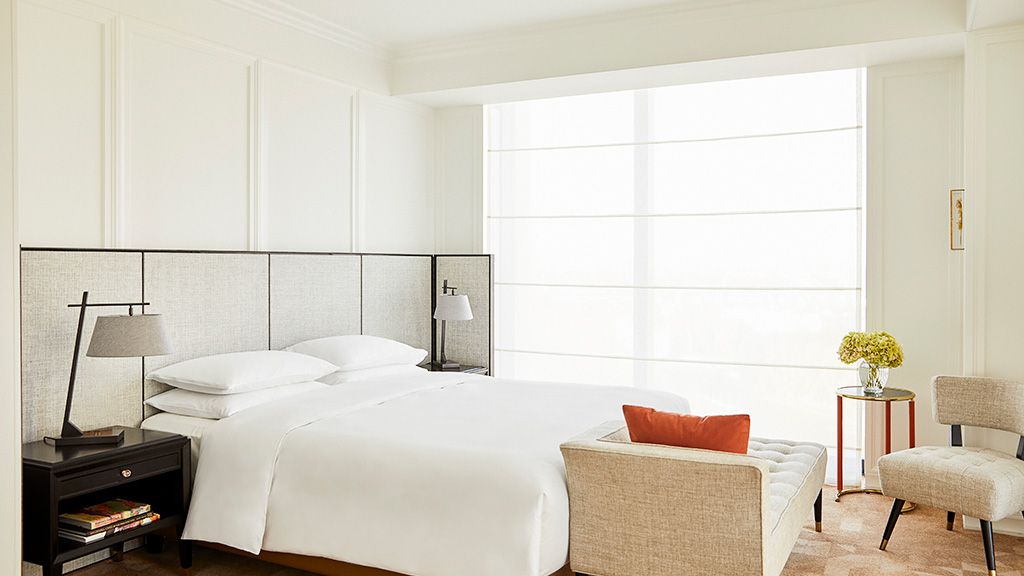 Retreat to our 45 sq m (484 sq ft) deluxe room with a king bed, featuring floor to ceiling windows, an elegant marble bathroom and luxurious amenities. Take relaxation to the next level in a delightful lounge area.