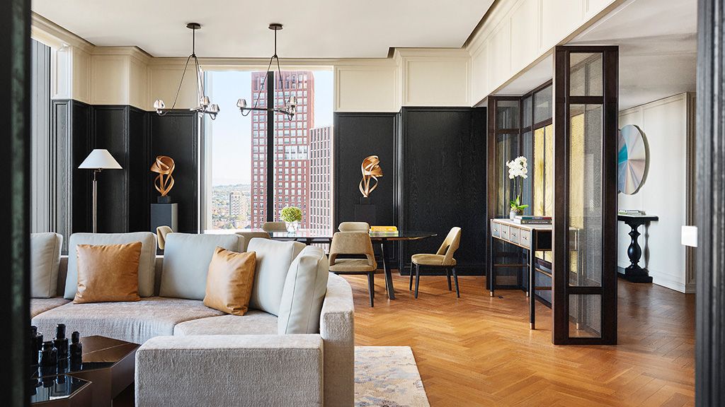Discover our luxurious Park Suite Deluxe set within 74 sq m (796 sq ft) space with floor to ceiling windows and LED televisions in both the living area and bedroom. The elegant marble bathroom highlights separate shower and freestanding bathtub.
