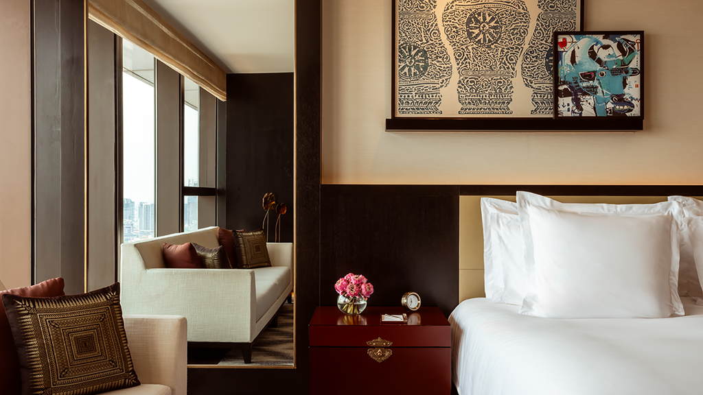 Perfectly suited for couples seeking privacy. Featuring residential-style living space and remarkable views of the legendary mekong river, these king bedded suites contain a large living room and bedroom, entrance foyer, and ample closet space. -ultra luxury -unparalleled city views - a sense of place -lifestyle layouts -comfortable yet sophisticated -modern technology -timeless furnishings -complimentary wi-fi -in room safe -in room coffee -free flow of selected wines, beer and soft drinks from 5:30 to 7 pm at living room -two pieces of pressing per day -late check-out until 2 pm -two-hour remork city tour -30-minute foot or shoulder massage at sense, a rosewood spa