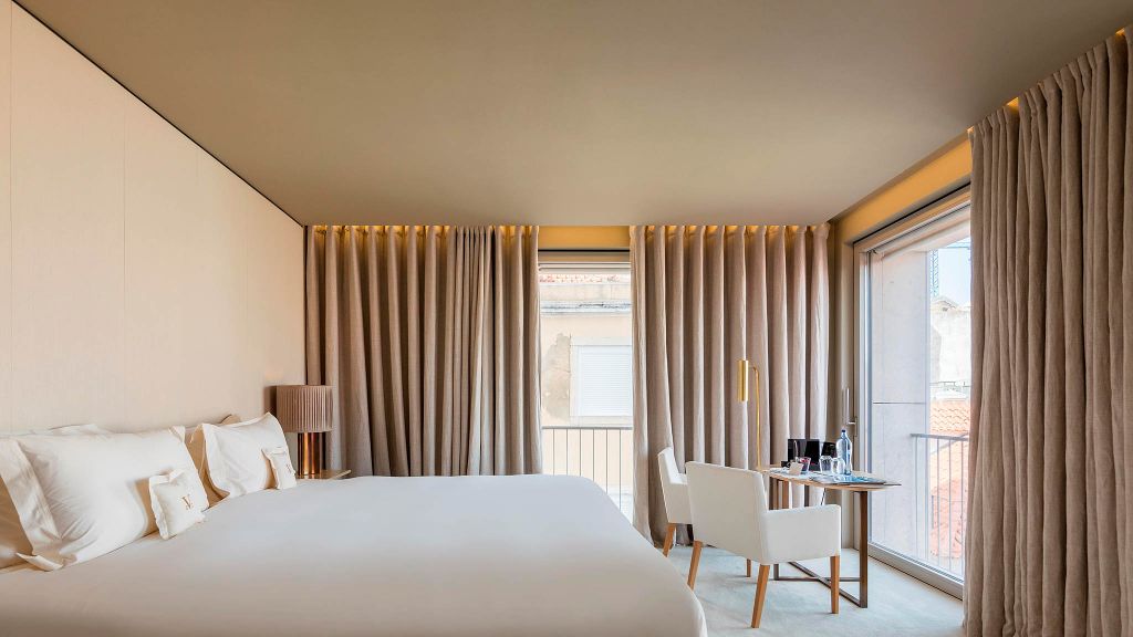 The hotel still preserves its original structural details; it is beautifully decorated with wooden ceilings, tile walls, and rococo-style stuccos. Combined with 21st century decor, the property is as comfortable as chic and as modern as royal. The top floor terrace is the ideal place to relax – complete with 360 degree views of the city, the Tagus River, and the Atlantic Ocean.