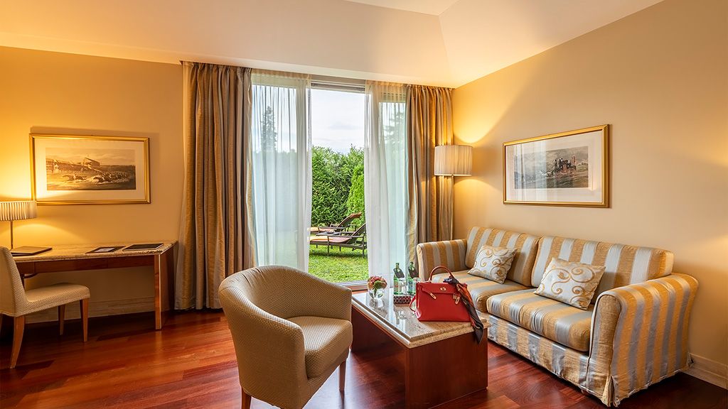 1 double bed – 75sqm / 810sqft – view over the garden – living room – terrace – an elegant suite featuring a spacious living area and a grand piano, where lush garden views set the stage for unforgettable moments – en-suite bathroom with jacuzzi and separate shower and toilet – bathrobes and slippers – dot cosmetics toiletries – hairdryer – desk – complimentary wi-fi – radio – cable and satellite television – minibar – nespresso coffee machine – safe deposit box – individually controlled air conditioning – pillow menu – no extra bed possible – 2 persons maximum